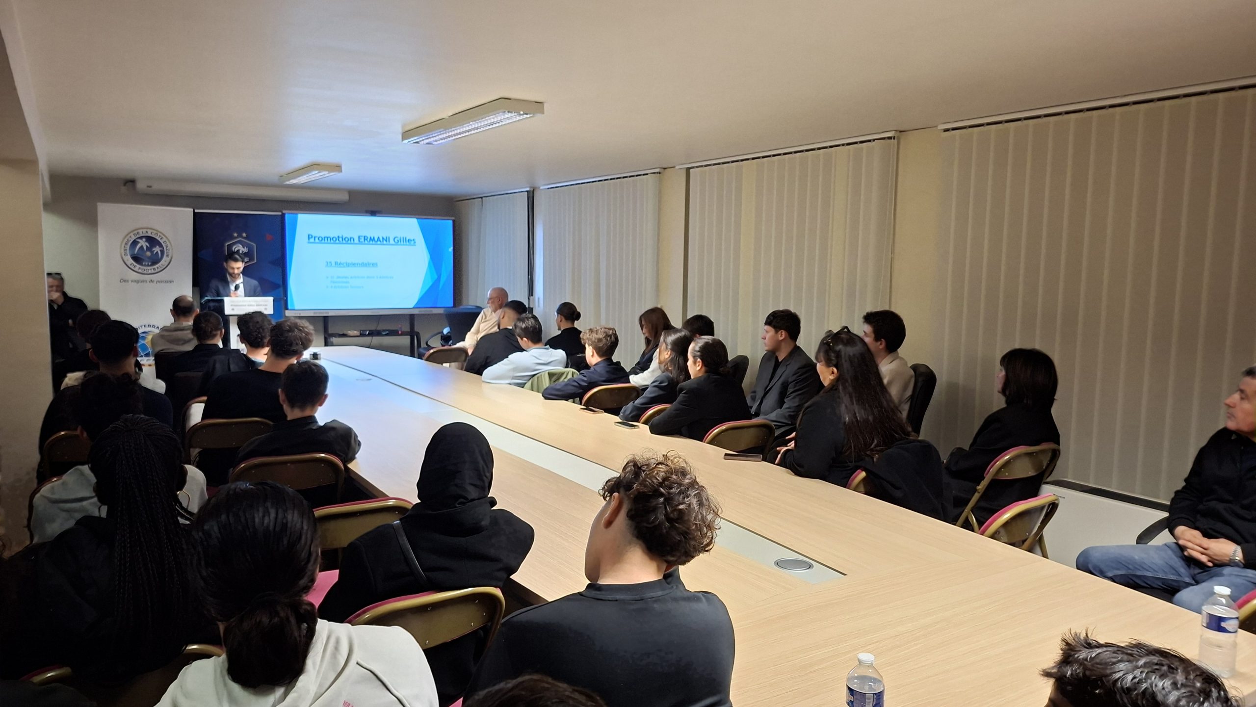 Récemment, le District a organisé la cérémonie de la promotion Gilles ERMANI, marquant la nomination officielle de 35 nouveaux arbitres, dont 3 féminines.